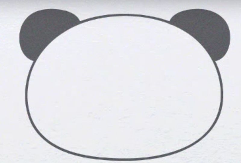 - Първо очертайте силуета на голяма панда. Главата е нарисувана като овал. Остава да завършите рисуването на ушите.