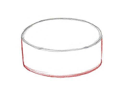 - За да завършите долното ниво на десерта, нарисувайте втори овал, подобен на първия. В средата на детайла се очертават две успоредни решетки, върху които удобно се поставят декоративните части на сладкия продукт;
