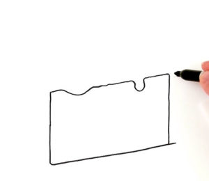 - Започнете, като начертаете остър триъгълник на лист хартия и свържете неговите прави лъчи с изпъкнала отсечка навън;