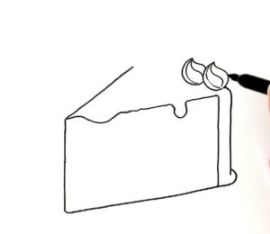 - Сладкото парче е украсено със сладко отгоре. За целта нарисувайте начупена лента, имитираща капки конфитюр;