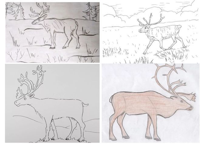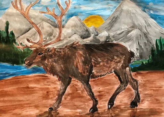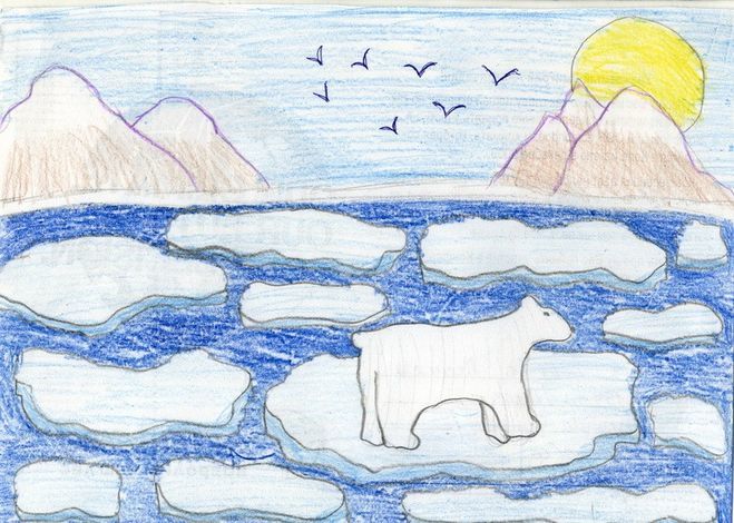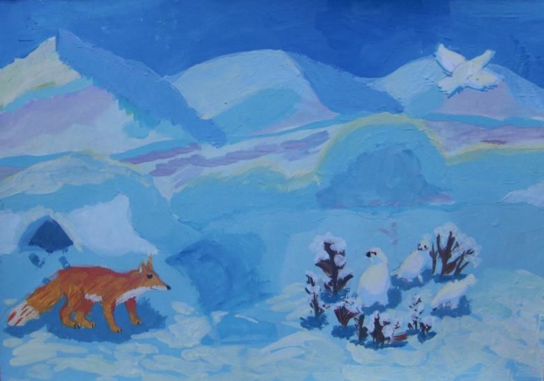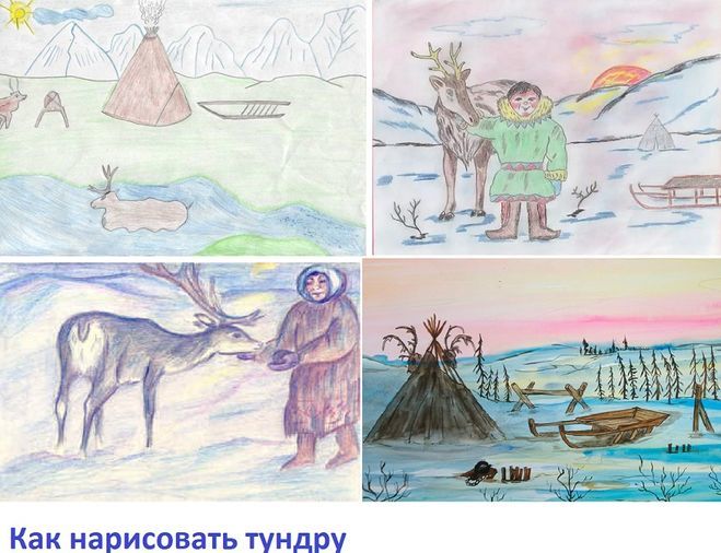 Що се отнася до изображението на тундрата, за да се постигне максимална достоверност и да се изобразят всички най-малки елементи, е позволено да се използват както цветове, така и моливи.