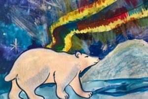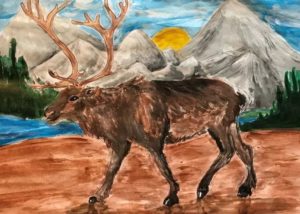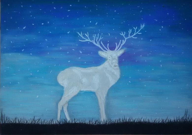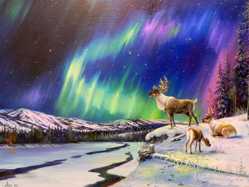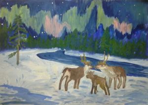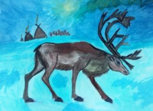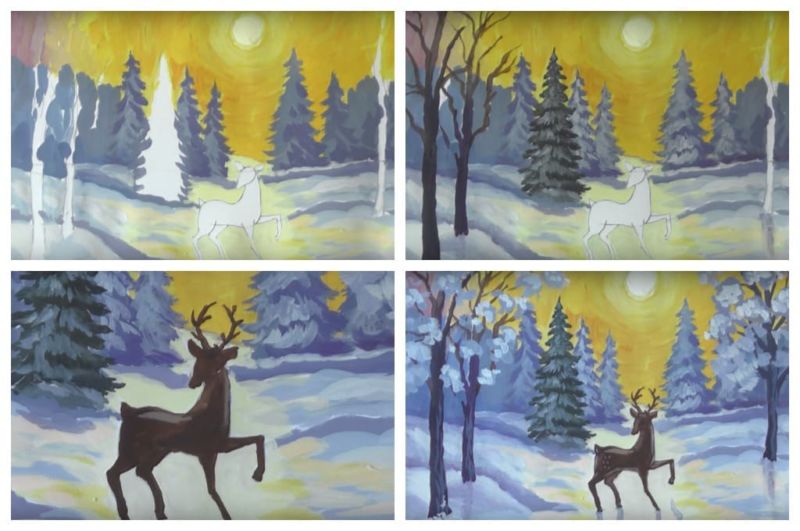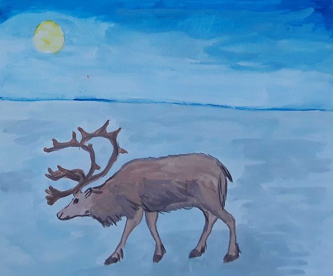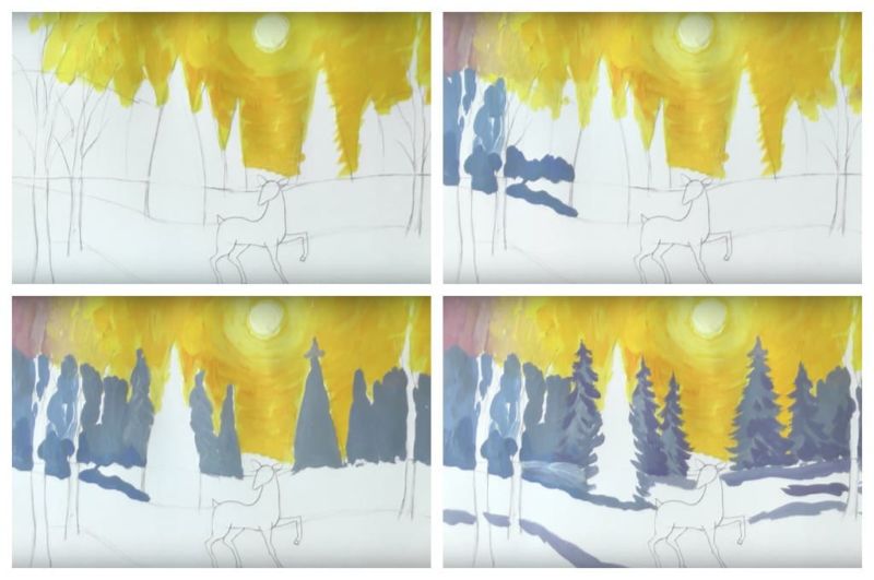- Едва след като фонът изсъхне напълно, може да се нарисува останалата част от изображението на тундрата.