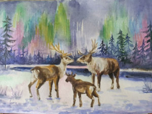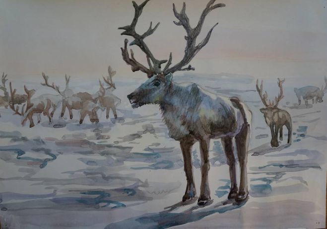 Техниката на акварела е малко по-различна. В този случай, за да направите снимката на тундрата за деца възможно най-лесна, трябва да се възползвате от прилагането на няколко слоя на изображението: