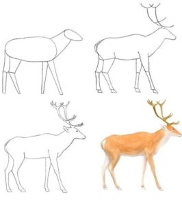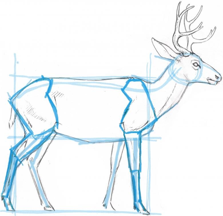 - Човешките и животинските фигури се скицират, т.е. отбелязват се пропорциите, главата, торсът и краката.