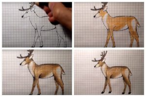 - Ако нанасяте щрихи с молив, които няма да се засенчват по-късно, изберете една посока. Тя трябва да съвпада с основните контурни линии или да следва логиката на изображението. За да изобразите козината на елена, направете къси щрихи по муцуната - от носа до ухото, по торса - от гърба до корема, по краката - покрай крайниците.