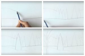 - Очертайте линията на хоризонта, като отделите част от листа под земята и част под небето.