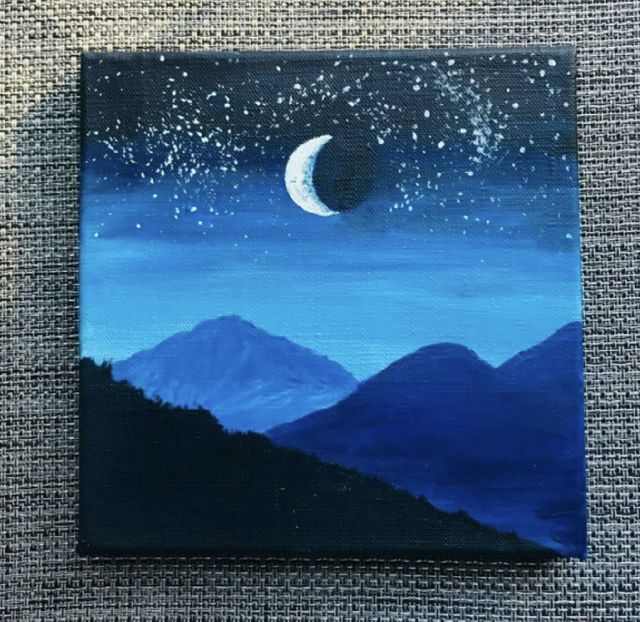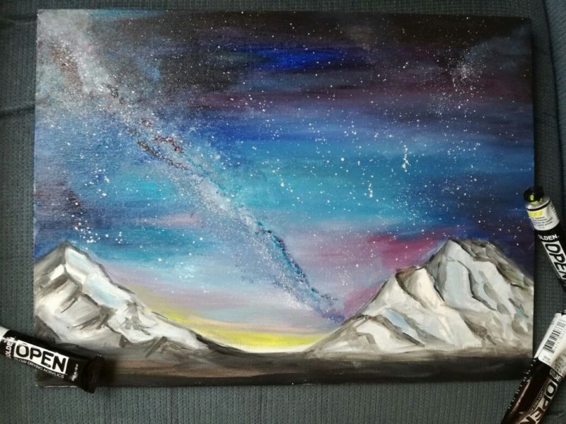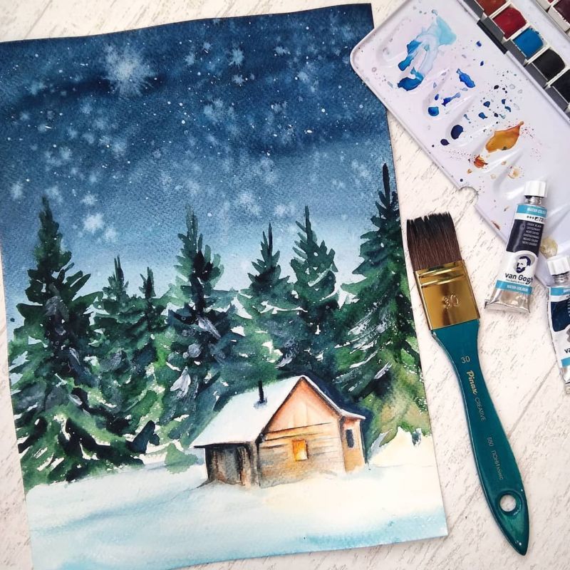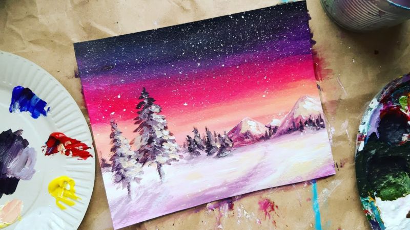 Нека нарисуваме друг пейзаж със зимно небе, обсипано със звезди: