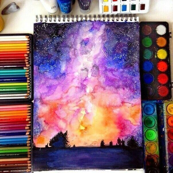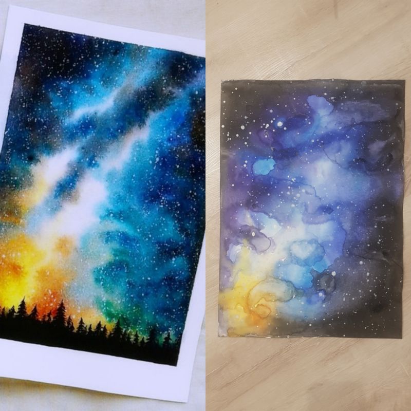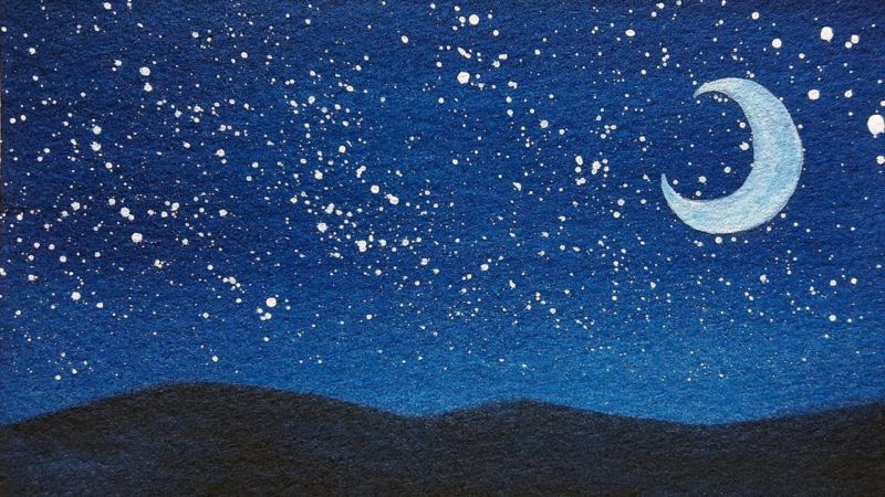 Нека се опитаме да създадем акварелна картина на разпръснати звезди в небето. Това е трудна работа и за да я свършите правилно, ще ви е необходим добър акварелен фон.