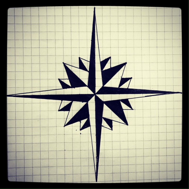 - От тази точка с помощта на компаса измерете разстоянието до върха на вертикалата. Това е върхът на звездата. Нека го отбележим като точка 1.