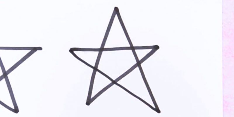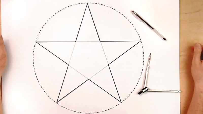 Нека нарисуваме геометричната форма на петолъчна звезда на ръка, без да използваме инструменти като линийка и компас: