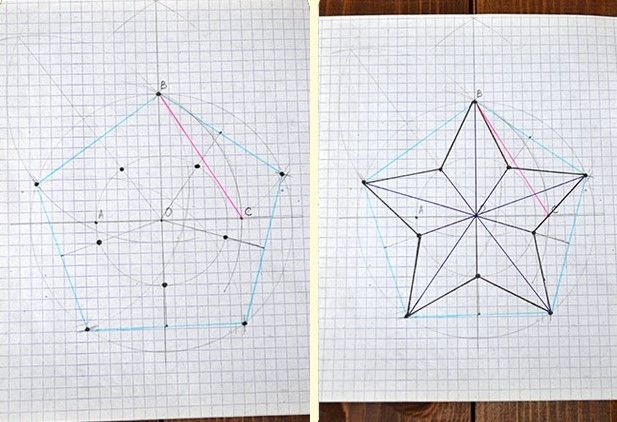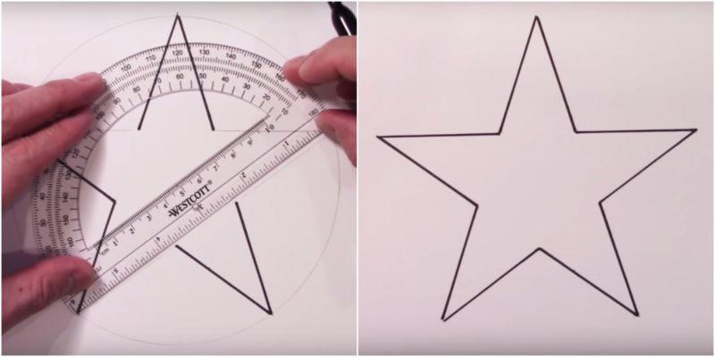 Чрез точно измерване на ъглите на планираната фигура можем да нарисуваме идеално права петолъчна звезда.