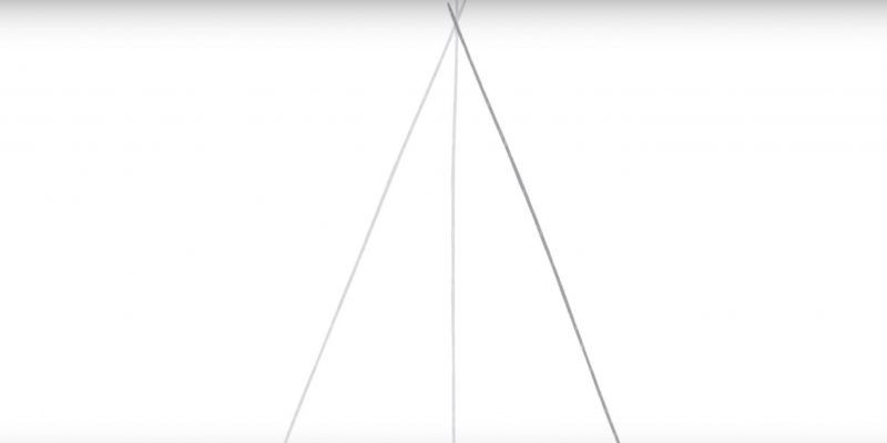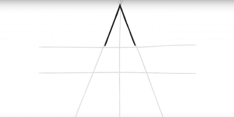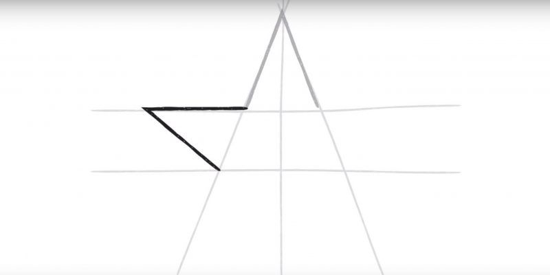 - Продължете линията нагоре и надясно, без да сваляте ръката си от хартията. Завършете го над централната точка на формата.