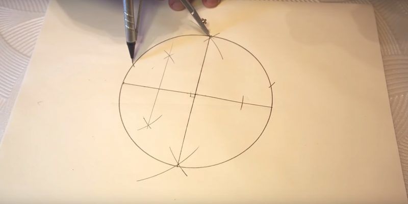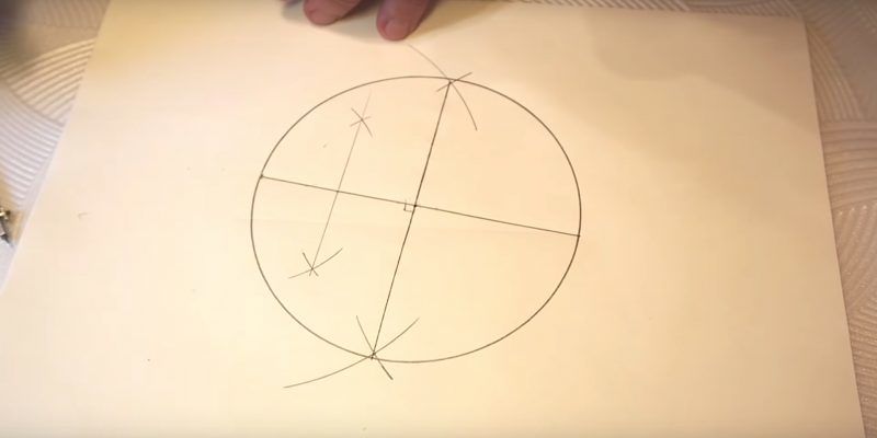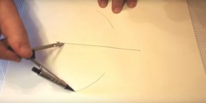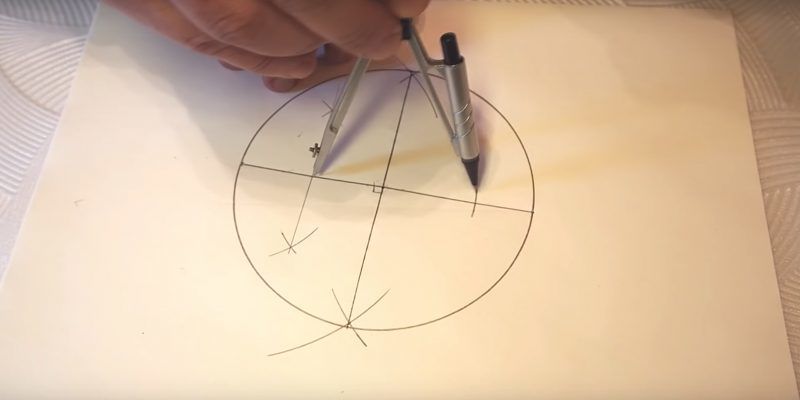 - Поставете компасите от лявата страна на линията. От горната и долната част на хоризонталната линия отбележете части от кръга.