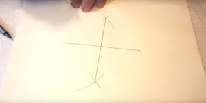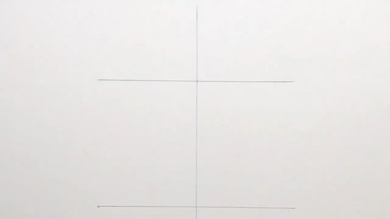- Начертайте вертикална линия, която пресича хоризонталната линия и минава през частите, отбелязани с компаса.