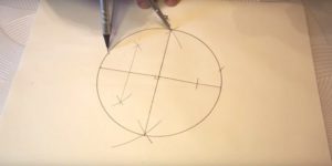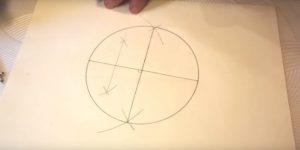 - Разделете го на четири равни области, като начертаете вътре перпендикулярни прави линии, минаващи през центъра.