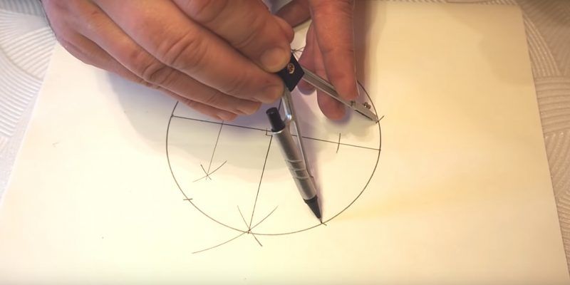 - Поставете иглата в центъра и отбележете части от кръг със същия размер от лявата страна.