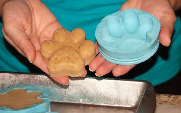 За да премахнете мехурчетата от сапуна, почукайте по масата, на която са поставени формите.