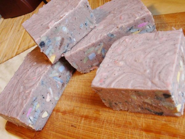 Напълнените форми се поставят на студено място за два дни. Когато сапунът се утаи и охлади, можете внимателно да го извадите от формата, като предварително прокарате нож между формата и продукта.