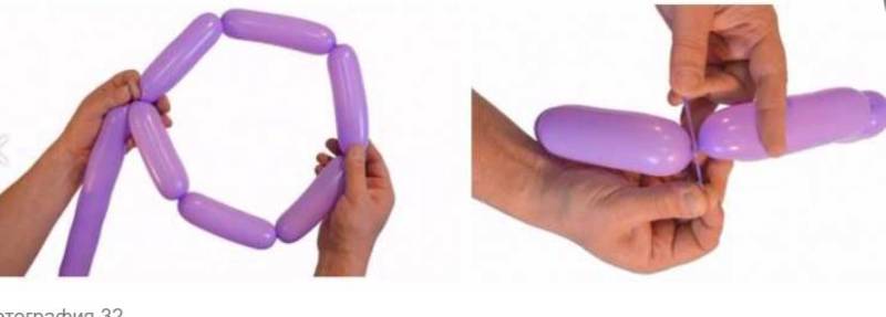 - Вземете лилав балон, надуйте го и го завъртете във формата на осмица;