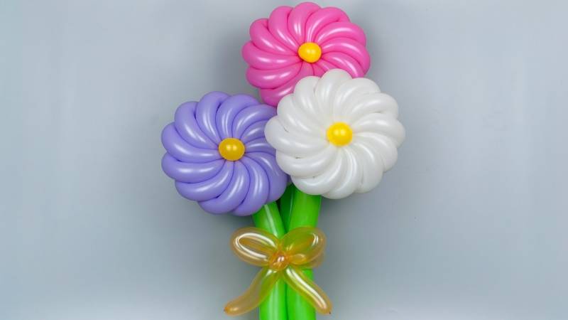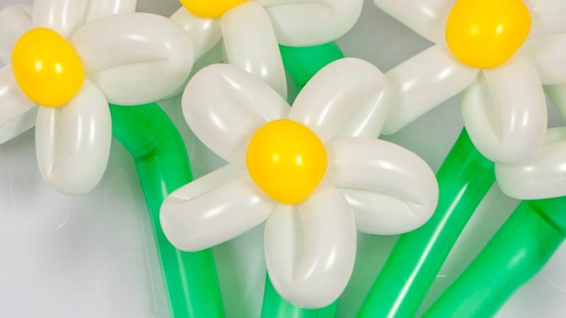 Важен аспект е, че всички балони трябва да са с еднакъв размер. В края на краищата венчелистчетата на маргаритките не се различават по размер, всички са еднакви.
