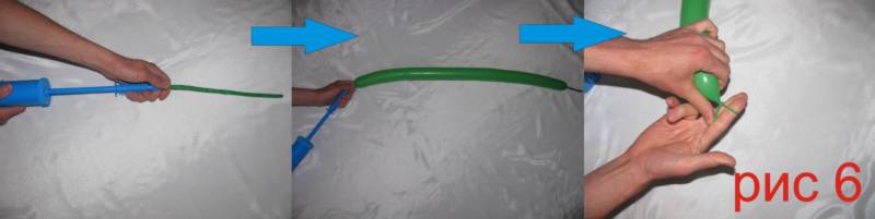 - с помощта на обикновена помпа надуйте дълъг балон;