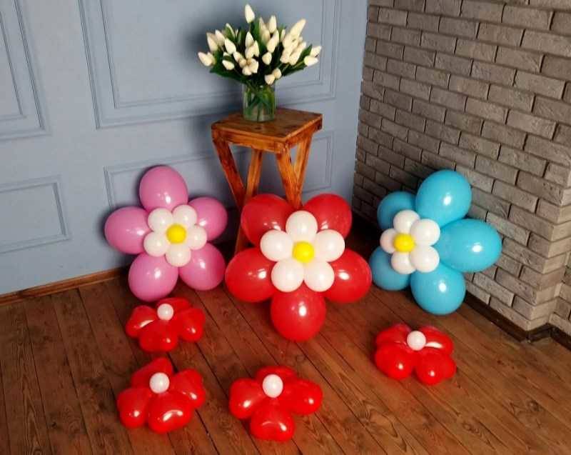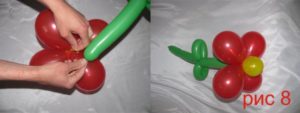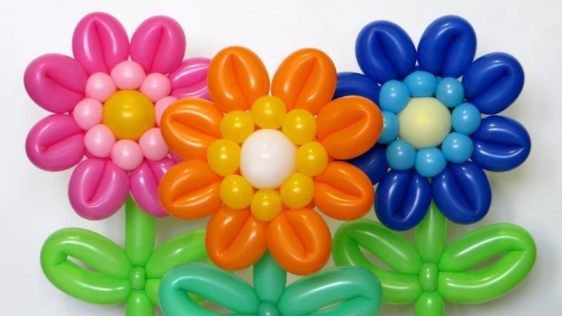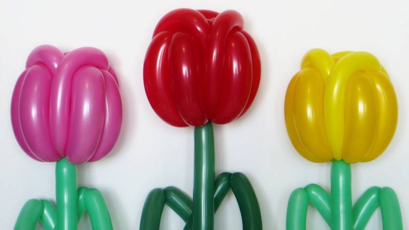 Така че с помощта на балони можете да направите истински шедьовър. И с това никой не ограничава майстора в избора на точно определен вид цвете, което да използва като прототип.
