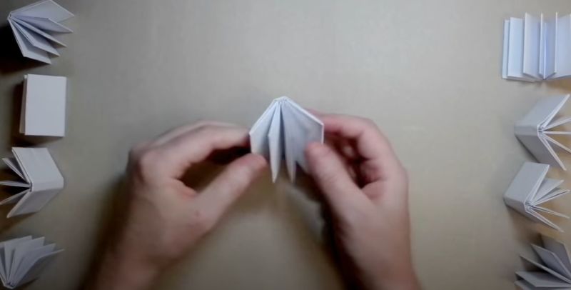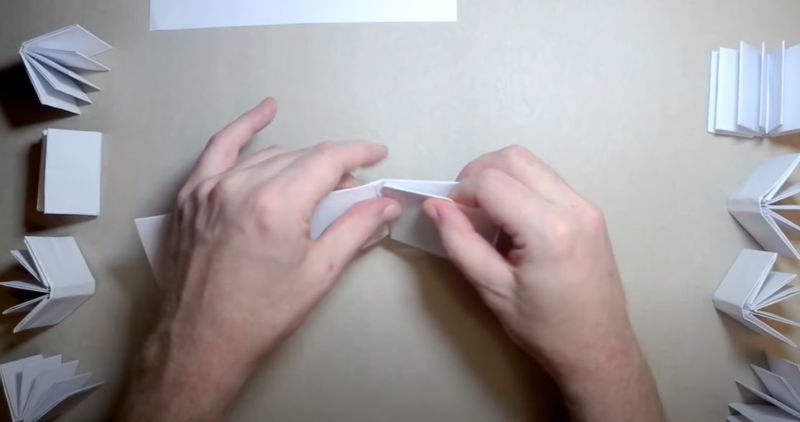 - Сгънете страната назад, обърнете я и направете сгъвка в обратната посока.