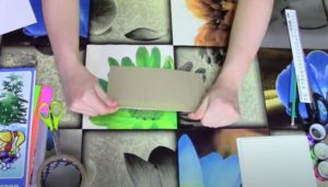 - Притиснете лентата към дясната страна на картона с помощта на линийка. Поставете 2 парчета картон и направете същото. Залепете 2 ленти на противоположната страна.