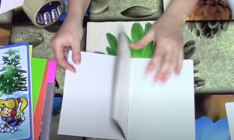 За тази работа ще ни е необходим картон с размери 20 на 22 см. Той трябва да бъде сгънат от двете страни, да се измести 1 страница и последната страница. Има и втори начин, който се състои в сгъване на книга от 1 лист хартия.