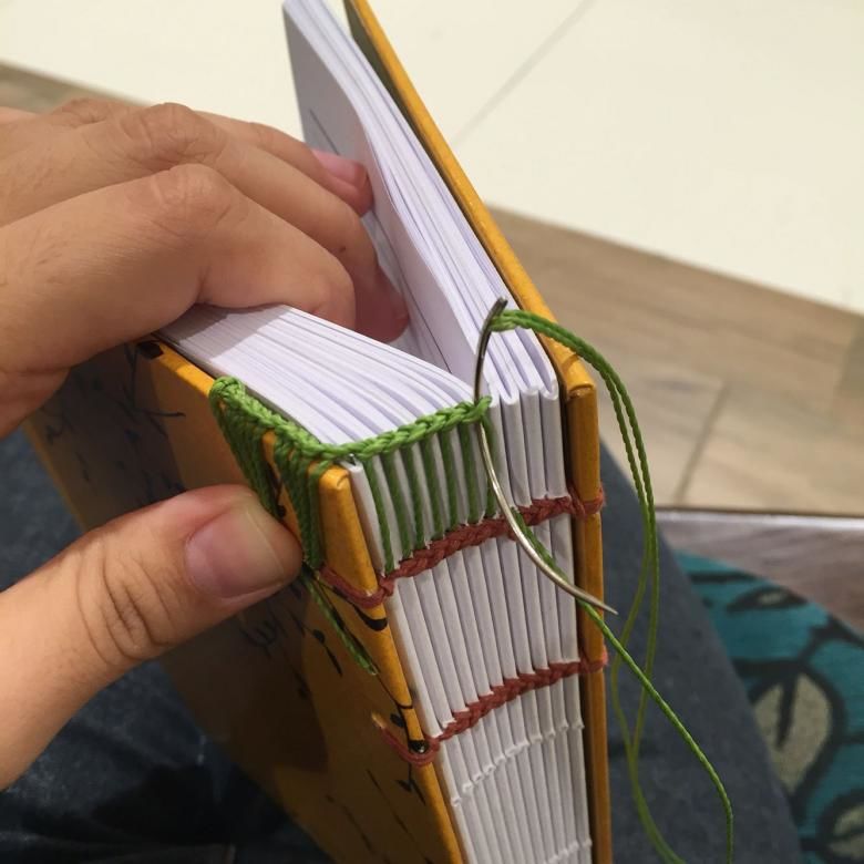 За да направите сами подвързия на книга, трябва да подготвите листове хартия. Например една книга може да се състои от 48 листа, така че трябва да имате 24 листа хартия, като предварително ги сгънете заедно. Ще имате два стека с по дванадесет листа. Следващата стъпка е да следвате инструкциите: