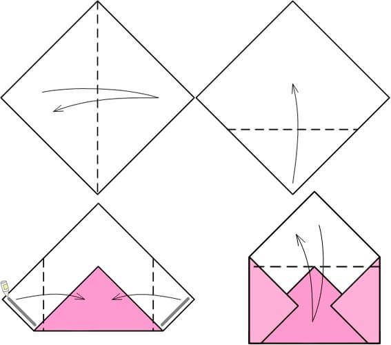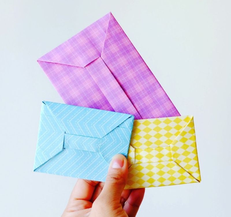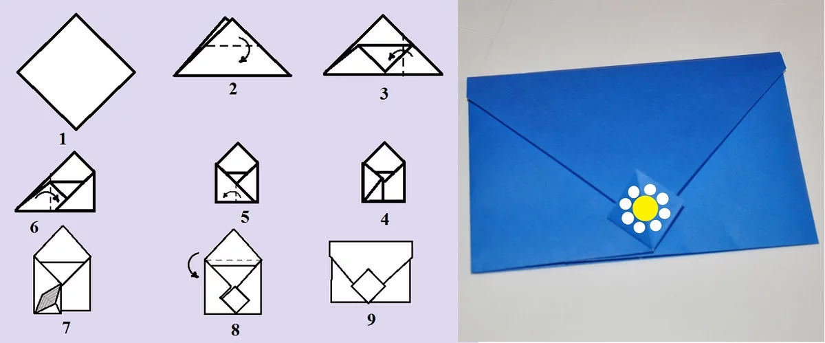 Този плик е изработен с японската техника за извайване на хартия. За изработването на модела ще ви е необходим лист хартия и нищо друго.