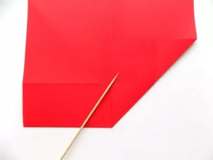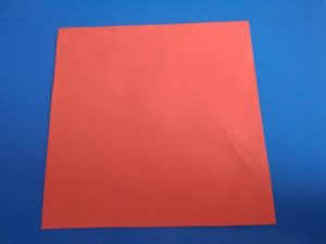 - Подготвя се хартиен квадрат, чиито ъгли се съединяват по диагонал, за да се отбележи централната точка.