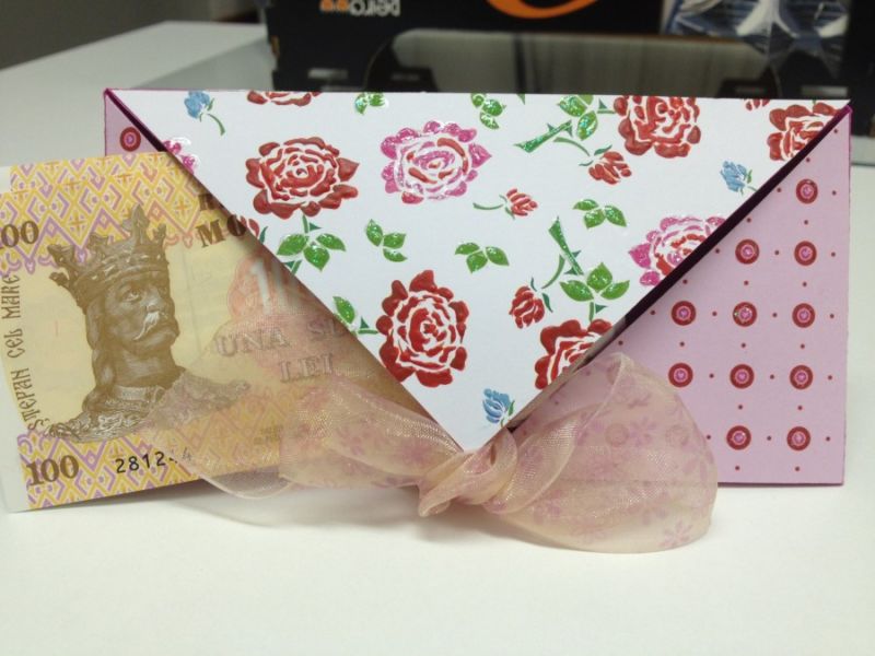 В книжарниците и вестникарските павилиони се продават готови "опаковки" за бележки, които да бъдат поднесени като подарък. Но е много по-интересно и приятно да получите паричен подарък в плик, направен на ръка.