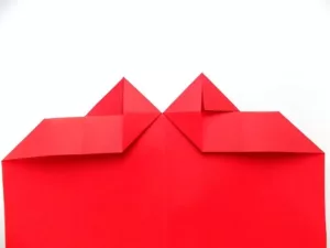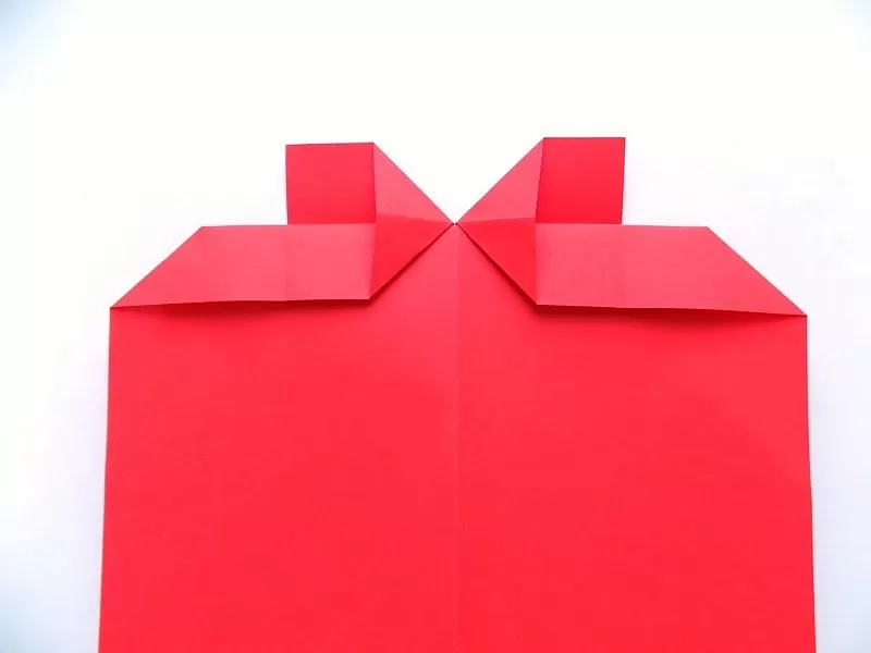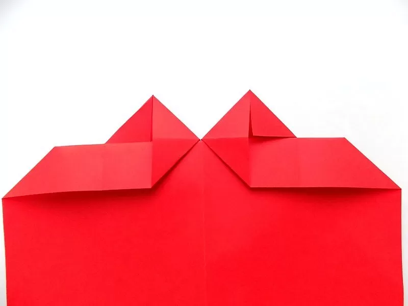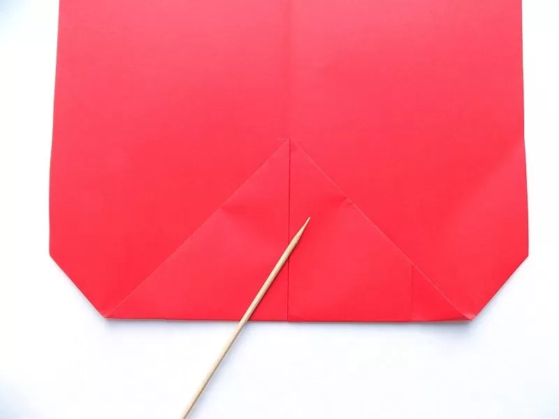- След това действие сгънете квадратите по диагонала и получените горни малки ъгли на сгъвката в посока надолу към линията на сгъване.