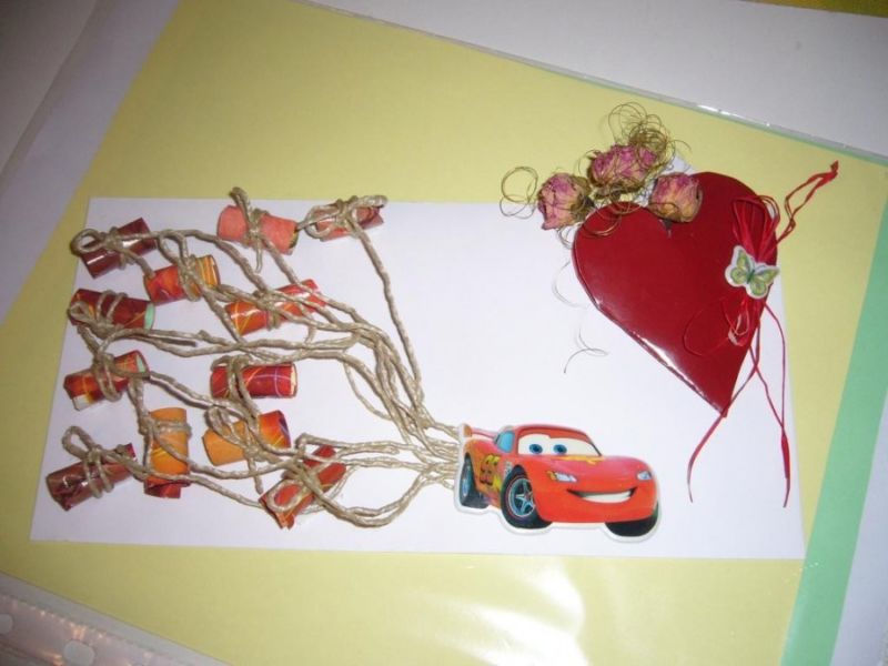 Възможно е да се направи следният несложен плик, който е украсен със стикери, красиви думи-пожелания и хартиени декорации.