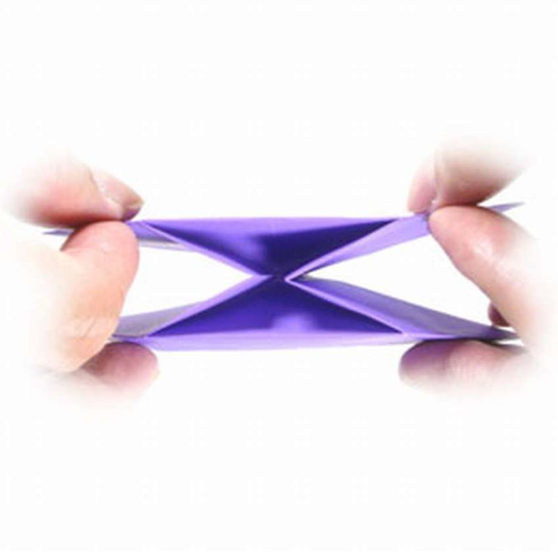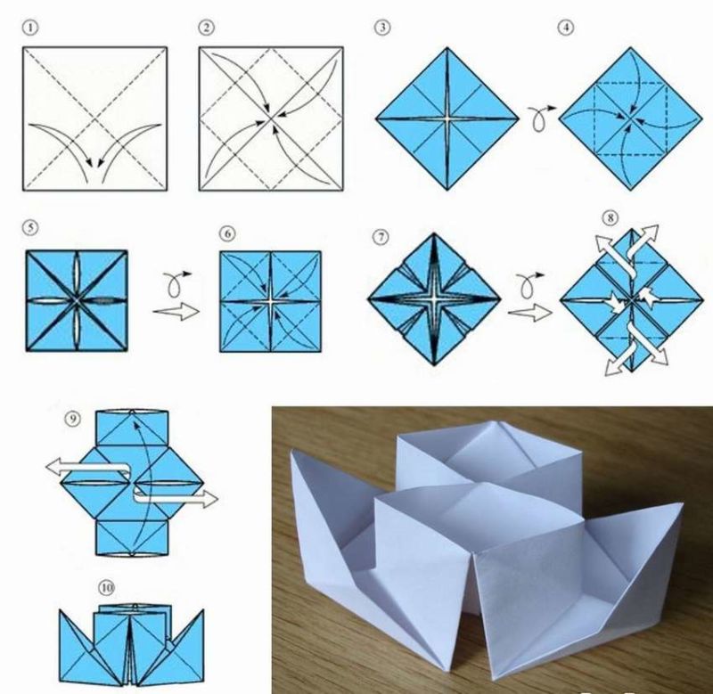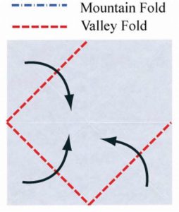 - Едната страна се разгъва и сгъва по предварително отбелязаните диагонали;