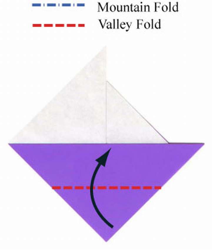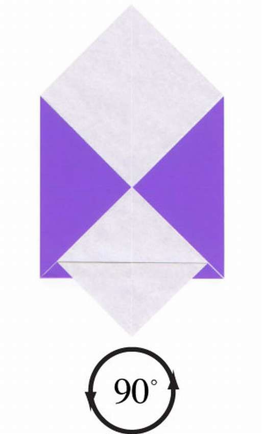 - Обърнете долната дясна страна с главата надолу и след това по диагонал на гънката;