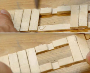 - Да направим краката: постройте две части от много залепени пръчки;
