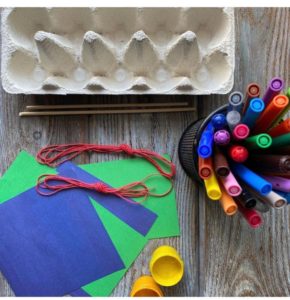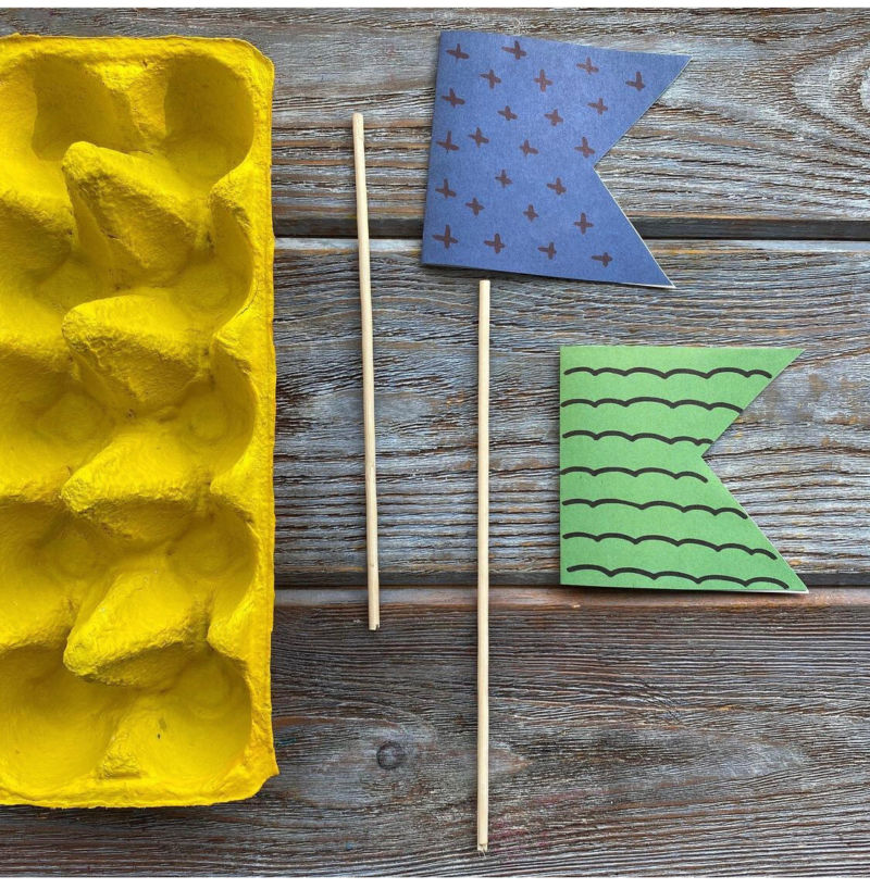 Необходими са ни: тава за яйца, дървена пръчка, светла хартия.