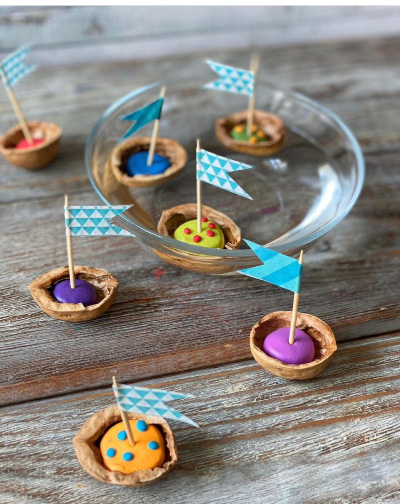 "Плоските лодки" от оригами отразяват възможността за поставяне на миниатюрни играчки. Децата могат да изпратят своите малчугани на пътешествие в открити води.
