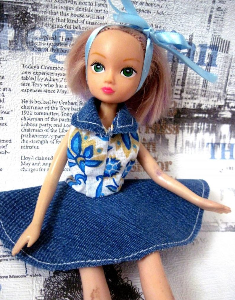 Шиенето на пола за кукла е още по-лесно. Измерете обиколката на талията и дължината на полата. Изрежете правоъгълник с необходимия размер за полата и лента за колана. Завършете полата от 3 страни с довършителен шев, съберете четвъртата страна и зашийте колана. Прикрепете закопчалка с велкро по краищата на готовата пола Закопчалка от велкро.