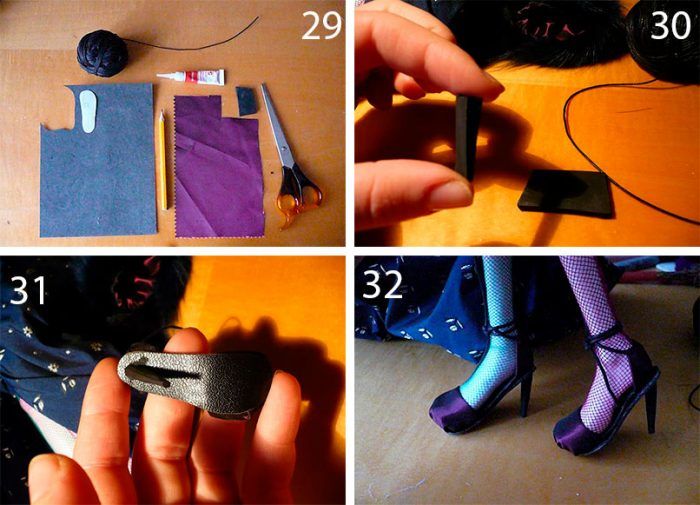 - Украсете ги с лилави ленти Пластмасов велур — Създайте обувка.