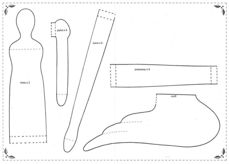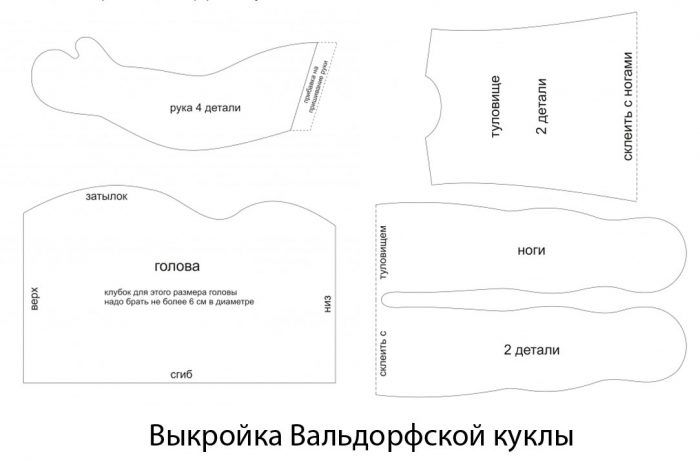 Такива модели могат да бъдат нарисувани от вас. Размерът на изрезките трябва да съответства на размера на куклата, която искате да направите: