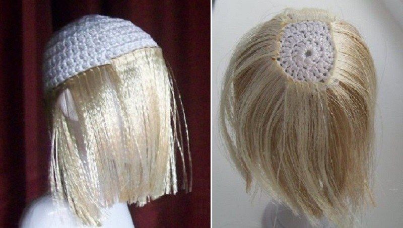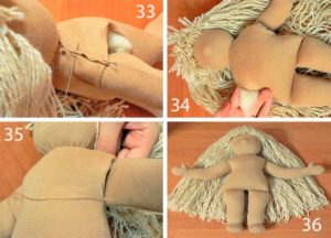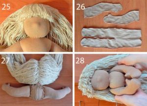 Косата на тази кукла може да бъде направена от парчета прежда - това ще бъде напълно различен образ.