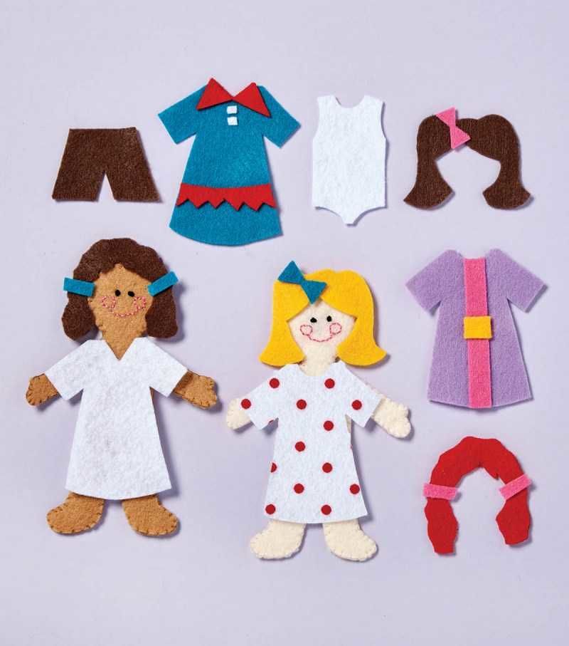 - За роклята и обувките, цветчетата и панделките вземете филц във всеки цвят, който ви харесва.