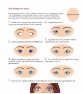 - Нарисувайте очите и устните.