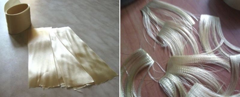 - От отделните нишки прежда съберете желаната дължина на косата: къса за момчетата, дълга за момичетата.