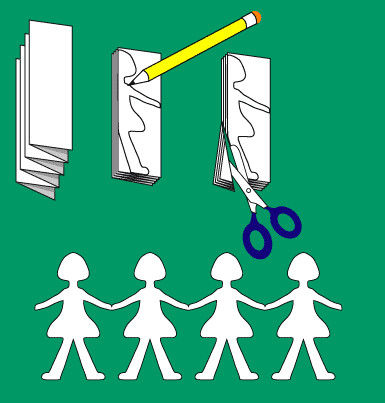 - На бяла хартия, сгъната хоризонтално наполовина, нарисувайте половината от фигурата на куклата. Опитайте се да запазите необходимите човешки пропорции. Ако не успеете, не се разстройвайте: можете да си представите, че това е герой от популярно сега анимационно филмче за деца, в което героите имат не съвсем пропорционални части на тялото.
