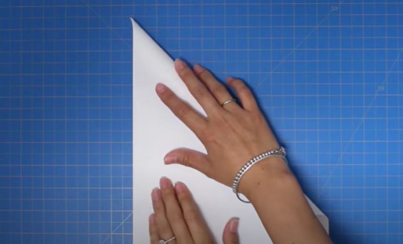 - Сгънете хартията наполовина по диагонал, така че противоположните ъгли да се срещнат.