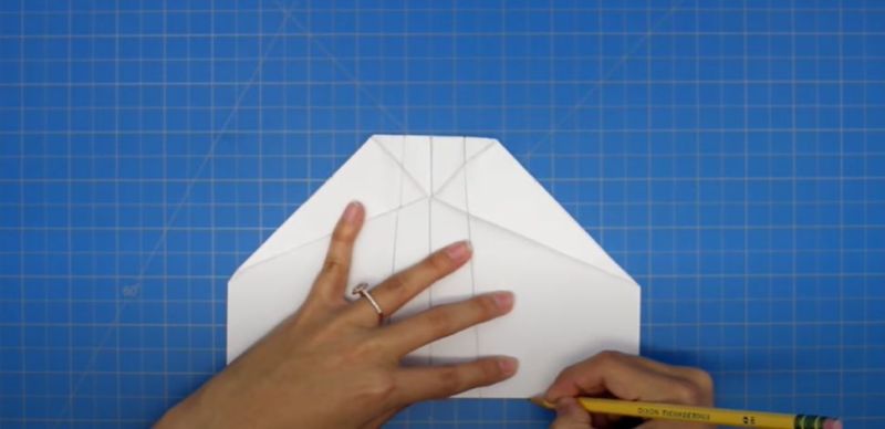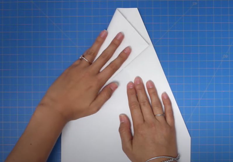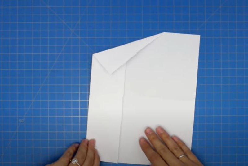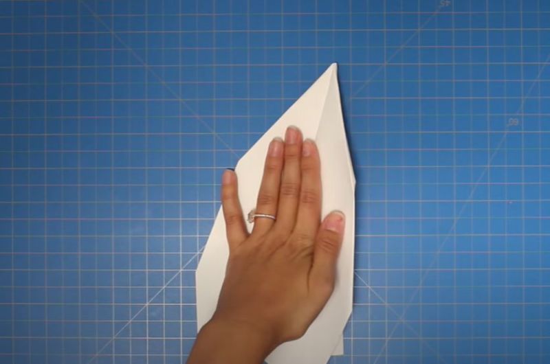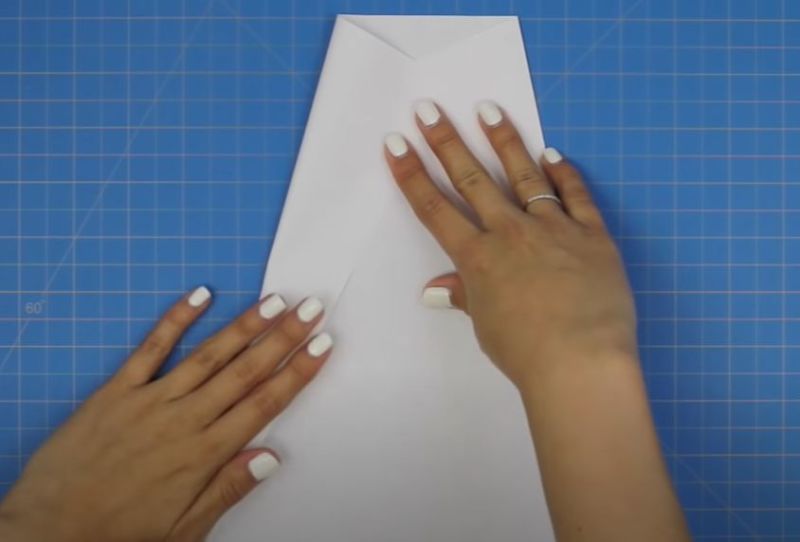 - След това сгънете върха на самолета надолу над централната гънка.